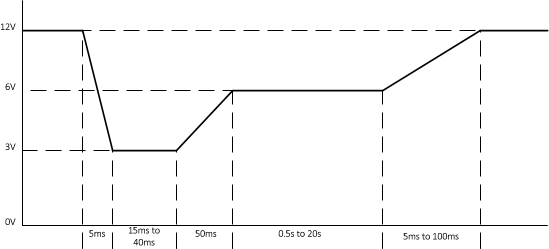 汽車系統(tǒng)需要承受高溫差、極端輸入瞬變和其它多種干擾的影響。汽車中幾乎所有的電子產(chǎn)品都需經(jīng)過嚴格的測試,以符合汽車電子委員會(AEC)規(guī)定的質(zhì)量體系標(biāo)準和組件資質(zhì)。大多數(shù)汽車系統(tǒng)采用12V鉛酸電池,并且您可能知道,電池的電壓幾乎在您可以想到的每種情況下都會發(fā)生變化:環(huán)境溫度、負載條件、使用年限等等,不勝枚舉。正常工作條件下,電壓的變化范圍可達到9V-16V。在某些工作條件下,甚至?xí)蟆觾?nèi)燃機時,12V鉛酸電池必須為起動電機的繞組提供足夠的能量,在短時間內(nèi)提供大量的電流,導(dǎo)致電池電壓急劇下降。極低的溫度會導(dǎo)致電池電壓降至更低水平。這種現(xiàn)象稱為冷啟動。典型的測試波形如圖1所示,其中電壓可以降至3V。