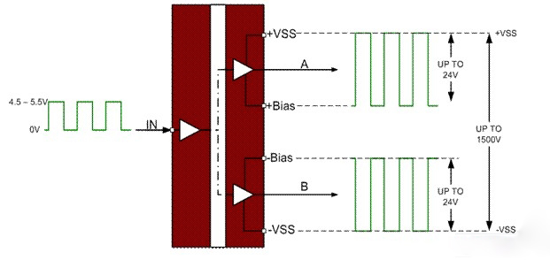 大多數(shù)現(xiàn)有高電壓IC(HVIC)D類驅(qū)動器缺乏將低壓調(diào)制部分轉(zhuǎn)為高壓電源部分的能力。能夠提供電平轉(zhuǎn)換的驅(qū)動器有也有其他不足,這使得它很難成為D類操作的理想選擇(例如,驅(qū)動器輸出接地端子采用負(fù)電壓軌,要求輸入驅(qū)動信號電平轉(zhuǎn)換到負(fù)電源)。通過分立器件添加該項(xiàng)功能,成本高、設(shè)計(jì)難度大且占用大量空間,具備高電壓雙極供電接口的電平轉(zhuǎn)換解決方案是D類設(shè)計(jì)的顯著優(yōu)勢。