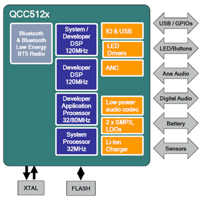 圖示1-Qualcomm高性能、低功耗音頻平臺(tái)QCC5100系列的系統(tǒng)架構(gòu)圖