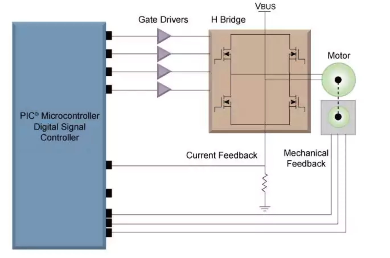 Microchip有刷直流電機(jī)控制方案的特點(diǎn)是良好的可控性、線性轉(zhuǎn)矩/電流曲線、速度與施加的電壓成比例、低散熱等。