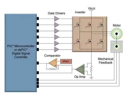 Microchip 無(wú)刷直流電機(jī)應(yīng)用還包括防鎖剎車(chē)系統(tǒng)、磁盤(pán)驅(qū)動(dòng)器伺服、油門(mén)控制等。