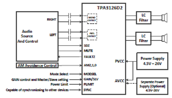 - 支持立體聲、單聲道 BTL 和單聲道 PBTL
