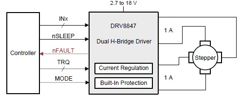 DRV8847 器件是一款適用于工業(yè)應(yīng)用、家用電器、ePOS打印機(jī)以及其他機(jī)電產(chǎn)品的雙H橋電機(jī)驅(qū)動(dòng)器。本器件可用于驅(qū)動(dòng)兩個(gè)直流電機(jī)、一個(gè)雙極步進(jìn)電機(jī)或繼電器等其他負(fù)載。借助簡(jiǎn)單的PWM接口,可與控制器輕松連接。DRV8847器件由單一電源供電,支持2.7V至18V的寬輸入電源范圍。