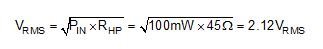 下一步,計(jì)算將這個(gè)功率量提供給耳機(jī)所需要的電壓和電流: