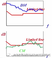 在實際運用中如果沒有插入輸入EMI的低通濾波器;我們采用差模和共模分離器進行無濾波器系統(tǒng)的理論研究如下:我們的測試的差模和共模的限值情況如下: