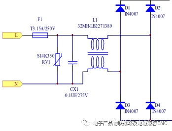 濾波器EMI-傳導(dǎo)的典型差模共模的等效設(shè)計圖如下:
