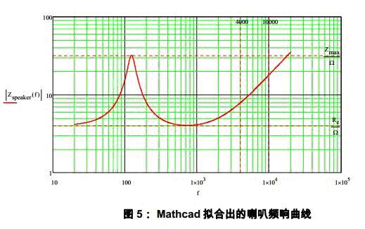 動圈式喇叭的阻抗特性可以使用圖4中的等效電路模型來模擬(等效電路模型的詳細分析請參見引用2)。其中: