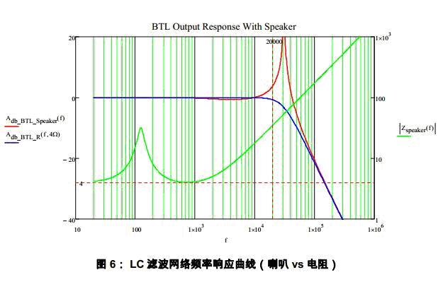 由于LC濾波器的Q值和負載R有關,只有當R非常大的時候才會出現(xiàn)高次諧波被放大的現(xiàn)象。在實際中負載R是動圈式喇叭。關于喇叭阻抗R和頻率的關系在下節(jié)中給出。