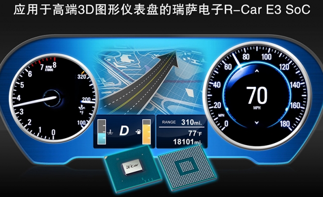 全球領(lǐng)先的半導(dǎo)體解決方案供應(yīng)商瑞薩電子株式會(huì)社(TSE:6723)今日宣布,為滿足各類汽車對大屏數(shù)字儀表盤日益增長的需求,將擴(kuò)展 R-Car 系列片上系統(tǒng) ( SoC ) 器件的產(chǎn)品陣容,針對應(yīng)用于高分辨率顯示(12.3 英寸,1920 x 720 像素)、高端 3D 圖形處理的汽車儀表盤,推出 R-Car E3 片上系統(tǒng)。該單芯片 SoC 能夠?qū)崿F(xiàn)平滑的 3D 渲染效果,并具有集成的音頻 DSP 和其他外設(shè)功能,可支持儀表盤以及具有音視頻顯示和其他功能的車載信息娛樂 ( IVI ) 系統(tǒng)。
