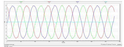 以上經(jīng)過硬件濾波后,如圖4所示,3相電流波形得到顯著的優(yōu)化。