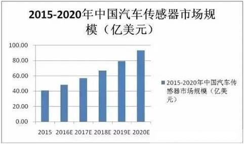目前中國是最大的汽車生產(chǎn)和消費(fèi)國家, 所以中國自然是汽車傳感器應(yīng)用大國。2016年我國汽車傳感器市場規(guī)模增長到48億美元, 預(yù)計(jì)到2020年將達(dá)到93億美元。