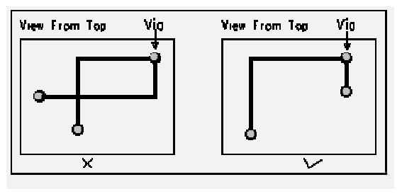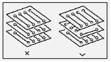 防止信號(hào)線在不同層間形成自環(huán)。 在多層板設(shè)計(jì)中容易發(fā)生此類問題, 自環(huán)將引起輻射干擾。