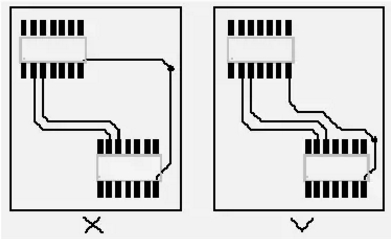 PCB設(shè)計(jì)中應(yīng)避免產(chǎn)生銳角和直角, 產(chǎn)生不必要的輻射,同時(shí)工藝性能也不好。