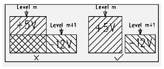 不同電源層在空間上要避免重疊。 主要是為了減少不同電源之間的干擾, 特別是一些電壓相差很大的電源之間, 電源平面的重疊問題一定要設(shè)法避免, 難以避免時(shí)可考慮中間隔地層。