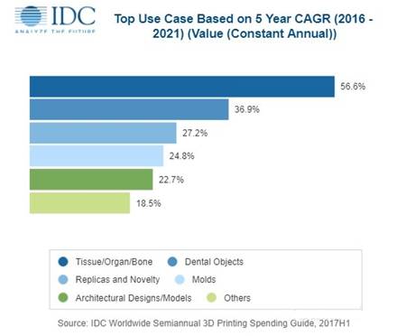 此外,在醫(yī)療保健領(lǐng)域,(4)到2022年,75%的新3D打印機(jī)將支持具有凝膠和橡膠等特性的新材料,從而帶來與3D打印產(chǎn)品相關(guān)的20億美元新支出。