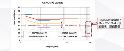 歷史上普遍接受的國際電磁干擾標(biāo)準(zhǔn)是CISPR-22,美國的電磁干擾標(biāo)準(zhǔn)是FCC,CISPR-22與FCC有所不同,但一般來說如果電源符合CISPR-22標(biāo)準(zhǔn),那么它也符合FCC標(biāo)準(zhǔn)?傊瓹ISPR-22標(biāo)準(zhǔn)已經(jīng)成為全世界都遵守的基本標(biāo)準(zhǔn)。汽車上的電磁干擾標(biāo)準(zhǔn)是CISPR-25,相對CISPR22來說CISPR-25標(biāo)準(zhǔn)限制值更低并且額外對FM頻段做了很嚴(yán)的限制要求。具體傳導(dǎo)測試限制要求如圖2所示。