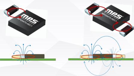如圖7 所示,對稱電容設(shè)計能明顯抵消磁場,如果電容集成到芯片內(nèi)部的話對傳導(dǎo)和輻射的高頻干擾都能起到極大的抑制作用,MPS的MPQ4491M就是一款高度集成的車載充電芯片方案,內(nèi)部集成了電容,具有良好的EMI性能。