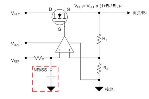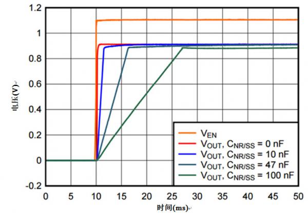 TI的許多低噪聲LDO系列都具有專門用作“NR/SS”的專用引腳,如圖 3 所示。