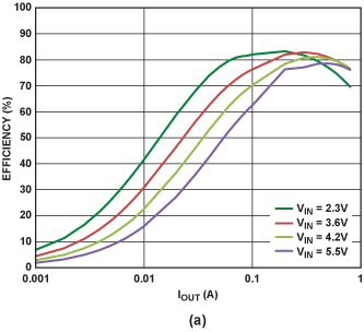 圖 5. ADP2138的效率:(a) 連續(xù) PWM模式;(b) PSM模式