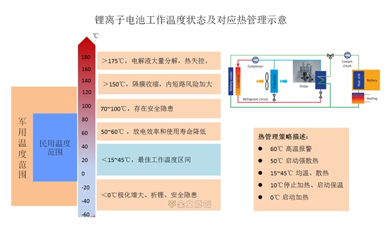 從成本角度,不太贊成“全溫度”需求設(shè)計方案。電池的本征特性NCM、 NCA、 LFP鋰離子化學(xué)電池溫度適應(yīng)性很窄,也只能通過熱管理去調(diào)節(jié)其應(yīng)用范圍(如圖示)。但是,有一個問題,適應(yīng)環(huán)境越強,溫度調(diào)節(jié)范圍越大,技術(shù)和成本投入也就越大(在熱管理的硬件、軟件部分)。如何權(quán)衡這個問題?我列舉幾點: