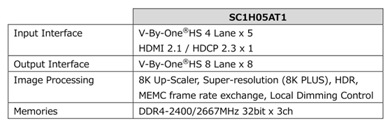 “SC1H05AT1”支持8K內(nèi)容處理功能,能滿足全球市場對8K內(nèi)容播放日益增長的需求。SC1H05AT1可兼容HDMI2.0/2.1和V-by-One接口,內(nèi)置的升級功能和Socionext獨自研發(fā)的高畫質(zhì)技術(shù)將Full HD(2K)、4K視頻內(nèi)容得以在8K面板上以最佳畫質(zhì)回放。