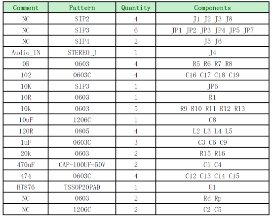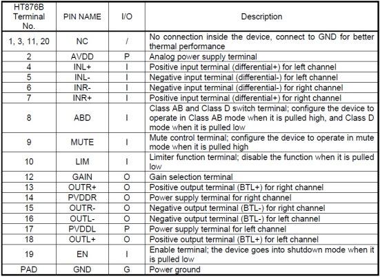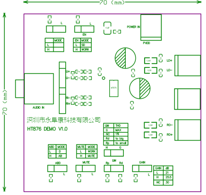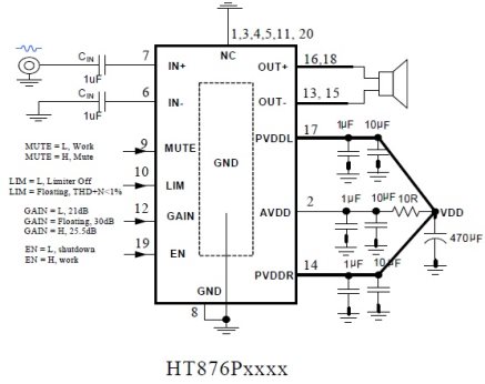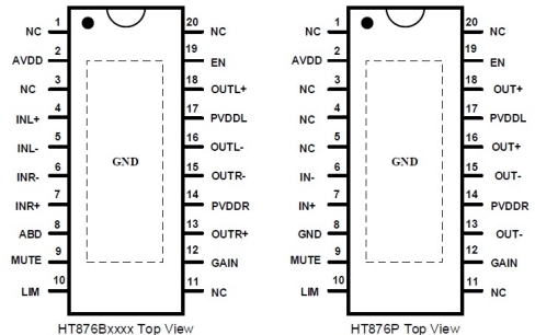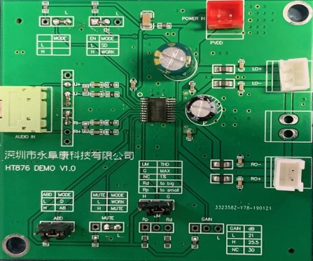 此外,HT876內(nèi)部集成免濾波器調(diào)制技術(shù),能夠直接驅(qū)動(dòng)揚(yáng)聲器,內(nèi)置的關(guān)斷功能使待機(jī)電流最小化,還集成了輸出端過流保護(hù)、片內(nèi)過溫保護(hù)和電源欠壓異常保護(hù)等功能。