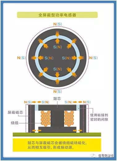 當(dāng)電感器附近存在屏蔽罩等磁性體時,磁性體會因電感器漏磁通影響產(chǎn)生振動,從發(fā)生嘯叫。