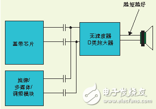 為了避免使用輸出濾波器,美國國家半導體(National Semiconductor)專門研制出了系列無濾波器D類放大器,為攻占這一市場提供了靈活性。其概念是采用一個移動的線圈揚聲器作為變送器(transducer)。音頻放大器上的典型變送器負載相當感性(感性負載)。因此,揚聲器負載可擔當作為其自身的濾波器。