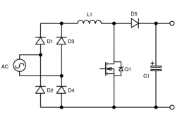 雖然圖2中的橋式整流器和升壓轉(zhuǎn)換器組合方法已經(jīng)使用了多年,但它已經(jīng)成為系統(tǒng)提高效率的限制因素,因為隨后的轉(zhuǎn)換器級已經(jīng)提高到大約97%的效率。在實際運行中,橋電路中的兩個二極管始終以大約1V的壓降工作,因此,對于1 kW功率, 115 V輸入的轉(zhuǎn)換器,橋電路至少消耗18W的功率。這大約占效率損失約為2%,系統(tǒng)效率最高也只能達(dá)到95%。對于80PLUS Titanium效能標(biāo)準(zhǔn),在高線路電壓和半負(fù)載下,要求完整轉(zhuǎn)換器的效率超過96%,因此橋電路已經(jīng)是一個問題所在之處。