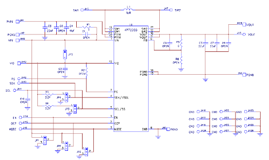 圖4.評(píng)估板AP72200-EVM電路圖