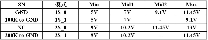 請(qǐng)根據(jù)供電方式以及需要的最高升壓,合理設(shè)置SN的狀態(tài)。詳見下表。1S_X模式最低默認(rèn)升壓5V;2S_X模式最低默認(rèn)升壓9V;分別對(duì)應(yīng)適合單節(jié)鋰電和雙節(jié)鋰電供電應(yīng)用。