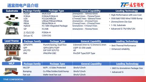 通富微電是我國集成電路封裝測試龍頭企業(yè),產品廣泛應用于智能終端、CPU、服務器、面板驅動器、存儲器、物聯(lián)網、人工智能、汽車電子等熱點領域 。目前,通富微電已成為中國集成電路封裝測試TOP2企業(yè)、半導體集團化跨國公司、全球封測行業(yè)領先企業(yè)。在本次展會上,將帶來如下展品。
