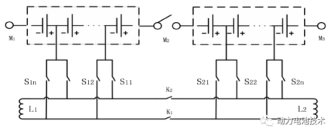 如下圖所示的并聯(lián)拓?fù)浣Y(jié)構(gòu),每節(jié)單體電池都有一個單刀雙擲的開關(guān)繼電器,所以 n 節(jié)串聯(lián)電池組內(nèi)需要 n+1 個繼電器。