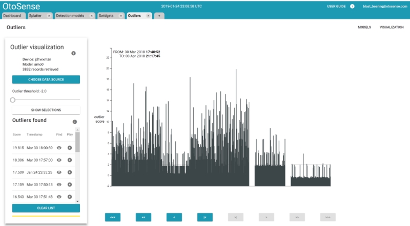 特征屬于物理領(lǐng)域,含義屬于人類認(rèn)知。要將特征與含義聯(lián)系起來,需要 OtoSense AI 和人類專家之間展開互動(dòng)。我們花了大量時(shí)間研究客戶的反饋,開發(fā)出人機(jī)界面 (HMI),讓工程師能夠高效地與 OtoSense 交互,設(shè)計(jì)出事件識(shí)別模型。這個(gè) HMI 允許探索數(shù)據(jù)、標(biāo)記數(shù)據(jù)、創(chuàng)建異常模型和聲音識(shí)別模型,并測(cè)試這些模型。