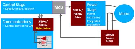 同樣在馬達(dá)驅(qū)動應(yīng)用中,需要采用電流隔離傳感器、隔離驅(qū)動去以及數(shù)字隔離器進行隔離,以保護主控MCU芯片。