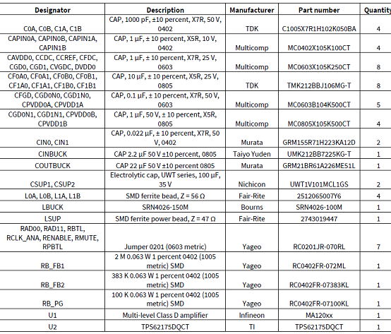 This application note describes the functionality and set-up of the reference design (Sections 2 and 3). It also includes a schematic, PCB layout, BOM and a discussion of circuit design considerations (Section 4). Measurement results (Section 5) show high performance in audio and efficiency parameters, as well as good thermal characteristics. Testing included a frequency sweep, output power sweep and electromagnetic interference tests. Finally, Appendix A provides sample code that demonstrates basic I2C communication using Arduino UNO.