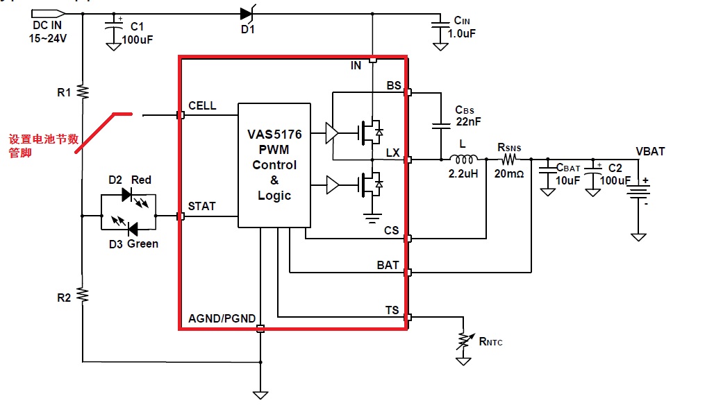 (3). 檢查VAS5176 是否設(shè)置第4腳接高電平工作于充4節(jié)的模式。
