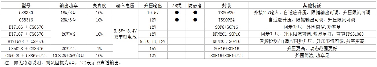 7.4V雙節(jié)鋰電升壓+功放IC選型表