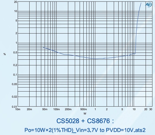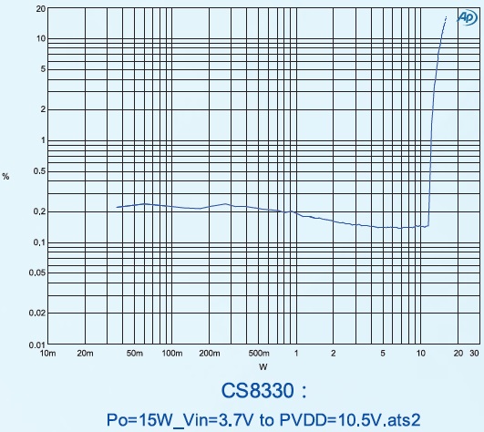 PO at 10% THD+N, VIN=3.7V RL=4Ω+22uH 15W(D MODE NCN OFF) PO at 10% THD+N, VIN =7.4V RL=4Ω+22uH 15W(D MODE NCN OFF) |
