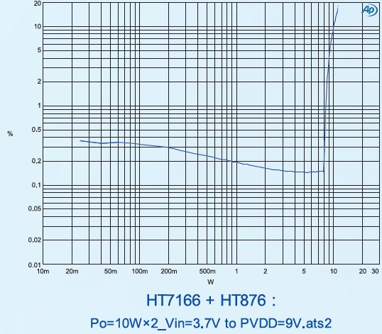 可單節(jié)鋰電和12V適配器雙電源供電應(yīng)用,適用于2.7V~12V各個供電節(jié)點(diǎn),4種防破音,AB/D切換,功率限制,內(nèi)置升壓模塊,具備自適應(yīng)升壓功能,恒定18W輸出功率R類單聲道音頻功率放大器 |