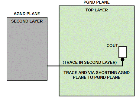 AGND層一路擴(kuò)展到輸出電容,AGND層和PGND層在輸出電容的負(fù)端連接到過孔。