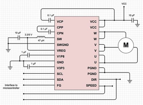 例如,Texas Instruments 的 DRV10983 就是設(shè)計(jì)用于無傳感器的 BLDC 電機(jī)的正弦控制。 芯片集成電力電子器件,可以連接外部 MCU 并提供高達(dá) 2 A 的連續(xù)驅(qū)動(dòng)電流。正弦控制通過使用公司的專有控制方案來實(shí)現(xiàn)。
