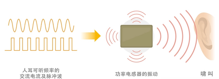 但DC-DC轉(zhuǎn)換器的開關(guān)頻率較高,達(dá)到數(shù)100kHz~數(shù)MHz,由于該頻率振動超出了人耳可聽范圍,因此不會感受到噪音。那么,為什么DC-DC轉(zhuǎn)換器的功率電感器會發(fā)出"嘰"的嘯叫呢?