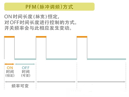圖2:PWM(脈沖調(diào)幅)方式與PFM(脈沖調(diào)頻)方式