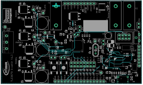This board provides a simple, easy-to-use tool for getting familiar with Infineon’s Embedded Power ICTLE9879QXA40 (further to be named: TLE9879). It contains the TLE9879 and its typical application circuitincluding three MOSFET half bridges to drive a BLDC motor. The board is ready to connect with car supply orsimilar and has an onboard J-Link debugger.