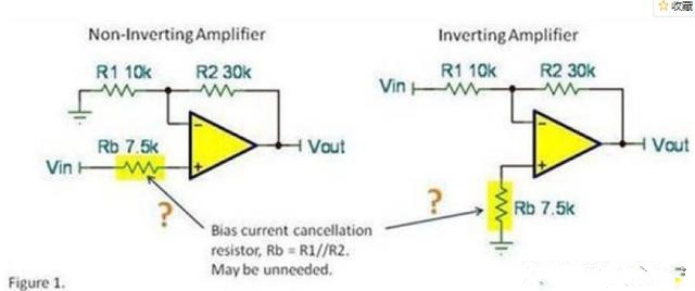 添加 Rb 的目的是降低輸入偏置電流引起的電壓偏移。如果兩個(gè)輸入都有相同的輸入偏置電流,則流過相同電阻的相同電流便會(huì)形成大小相等但方向相反的偏移電壓。因此,輸入偏置電流不會(huì)增加電路的偏移電壓。這種基本想法在某些情況下有優(yōu)點(diǎn)。但在添加 Rb 以前,您都考慮過它的必要性嗎?