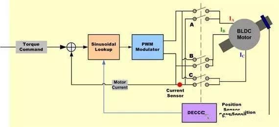 圖3:BLDC電機(jī)正弦波控制器的簡化框圖