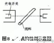 利用光電開關(guān)還可以進(jìn)行產(chǎn)品流水線上的產(chǎn)量統(tǒng)計(jì)、對(duì)裝配件是否到位及裝配質(zhì)量進(jìn)行檢測(cè),例如灌裝時(shí)瓶蓋是否壓上、商標(biāo)是否漏貼(見圖7),以及送料機(jī)構(gòu)是否斷料(見圖8)等。