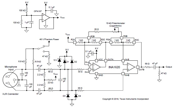 圖3.專(zhuān)業(yè)麥克風(fēng)預(yù)放大器電路
