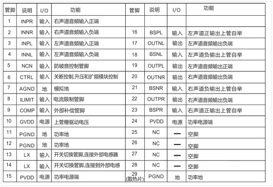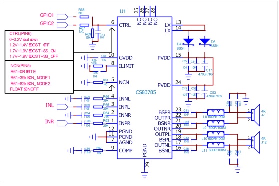 3.7V鋰電池供電依然是現(xiàn)階段便攜式音箱主流方式。在有限的電池電壓前提下為了把輸出功率做大,功放芯片內(nèi)置升壓模塊把升壓值再提高。此時(shí),要考慮到效率問(wèn)題,理論上升壓越高,壓差越大,效率越低。CS83785是一款內(nèi)置升壓音頻功放IC,3.7V鋰電池供電內(nèi)置升壓到8.5V,能提供2×10W持續(xù)功率輸出。效率最高達(dá)85%,這就保證了輸出功率恒定以及整機(jī)溫升在正常范圍之內(nèi),以及鋰電池的續(xù)航時(shí)間。CS83785另一個(gè)亮點(diǎn)是可以支持外接12V電源直供,此時(shí)能提供2×18W輸出功率。還有其他豐富的功能以及性能:兩種防破音可選、擴(kuò)頻模式、過(guò)流保護(hù)、短路保護(hù)、過(guò)熱保護(hù)等。采用簡(jiǎn)潔的EQA28封裝設(shè)計(jì)生產(chǎn)也非常方便。